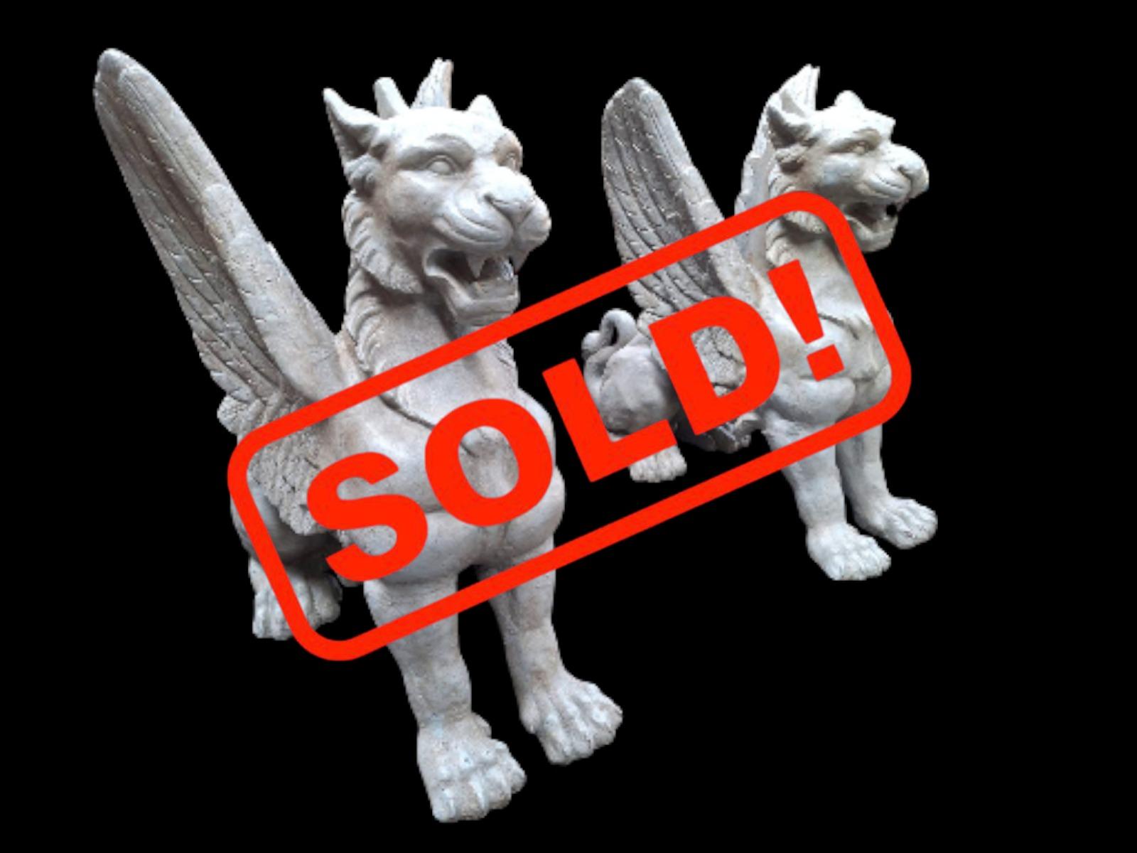 Nice and decorative iron griffin's, detailed and nice patina. H 82 X L 92 cm